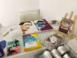 全力で描いてきて会場を盛り上げるグループ展です。